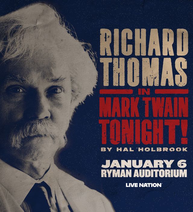 Use the form below to enter to win tickets to “Mark Twain Tonight, by Hal Holbrook” starring Richard Thomas, at the Ryman Auditorium, January 6, 2026. Drawing closes September 22 at noon. Winner will be notified later that day. Please limit your entry to one per person.