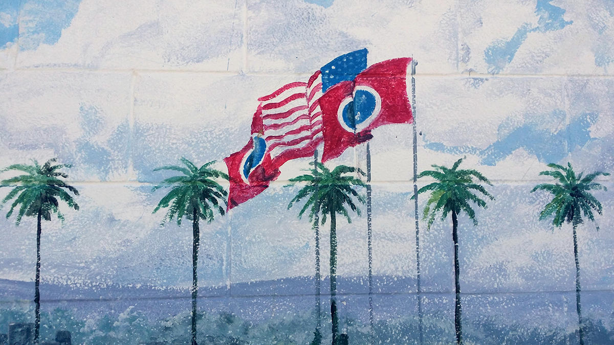 Palm trees are a popular motif in the murals on Nolensville Pike , but I especially like the ones in this scene on the side of the Newroz Market just off of Nolensville Pike on Elysian Fields Court in the heart of Nashville’s Little Kurdistan marketplaces. The mural re-imagines our city as a tropical paradise where the Parthenon looks likes it’s set somewhere closer to its original home and the state flag and the Star Spangled Banner both share the sky with these tall, waving trees. Complete with a hilal butcher and an amazing flatbread bakery, this market is a meeting-place for Nashville’s Kurdish community and one of the best international markets in the city for home chefs of any background looking for authentic Middle Eastern ingredients and products.