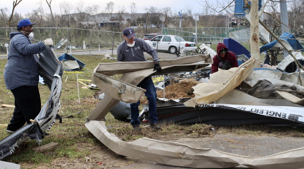 Tennessee State University Tennessee State University staff clean up rubble after the March 2020 tornado that destroyed the school’s agricultural campus.