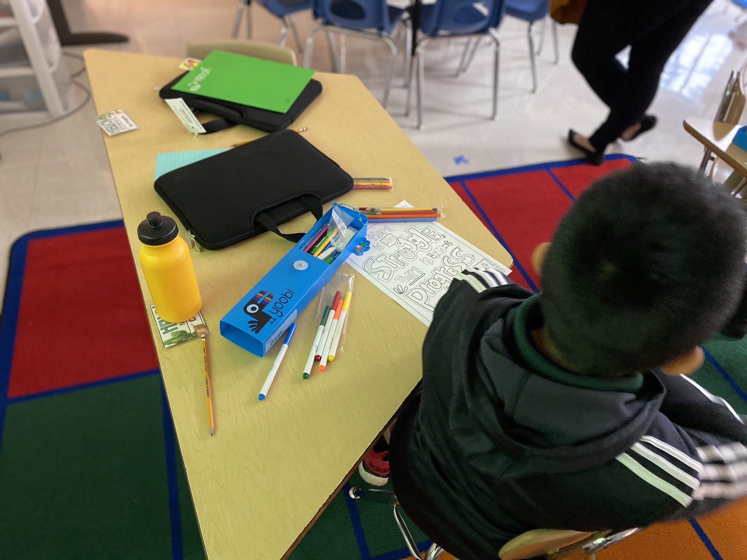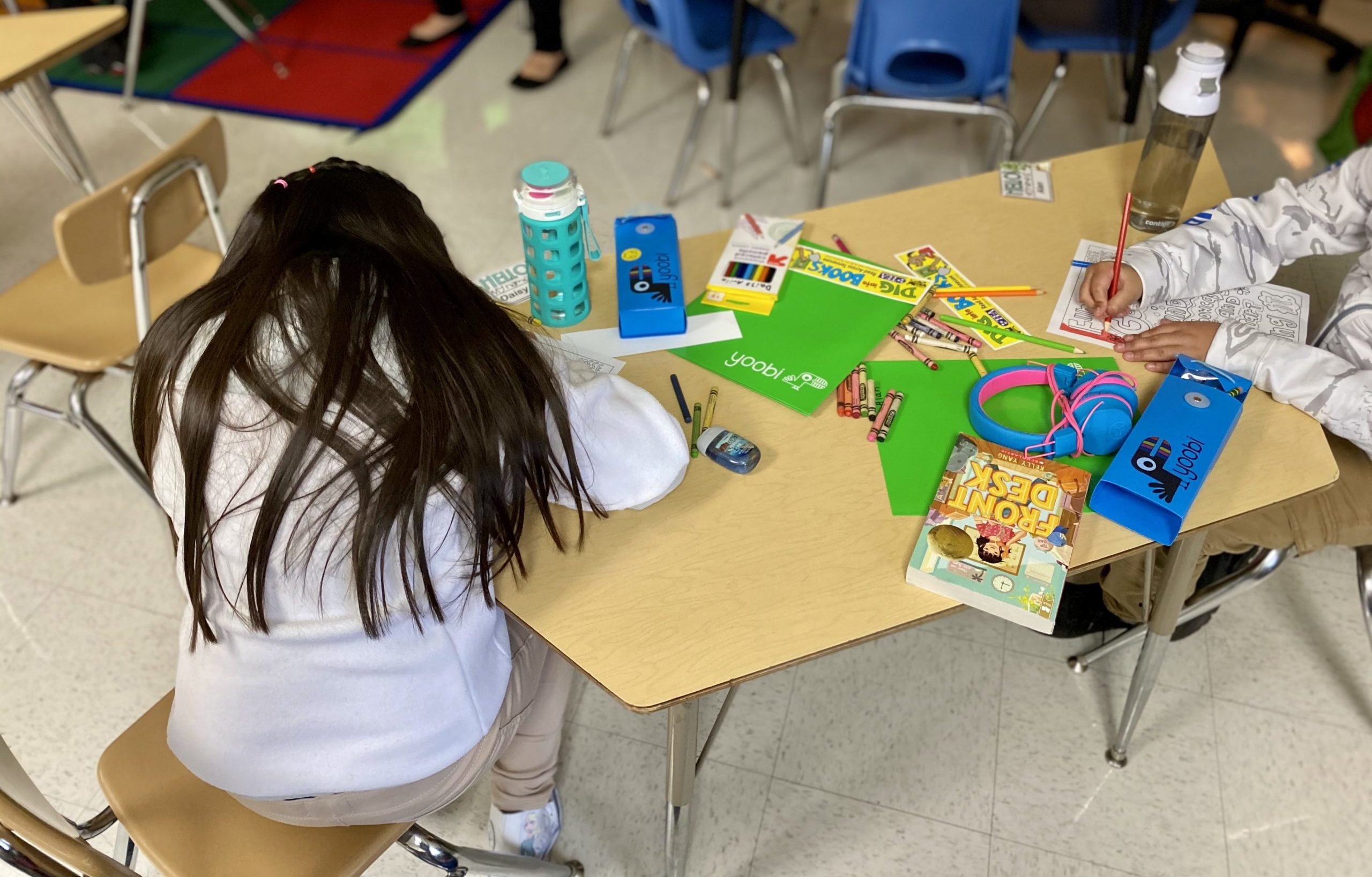 Then, for the first assignment, she asks the kids to share their feelings about being back inside the building. The students respond with mixed emotions. Most are excited. Others say they’re looking forward to the opportunity to “learn better.”