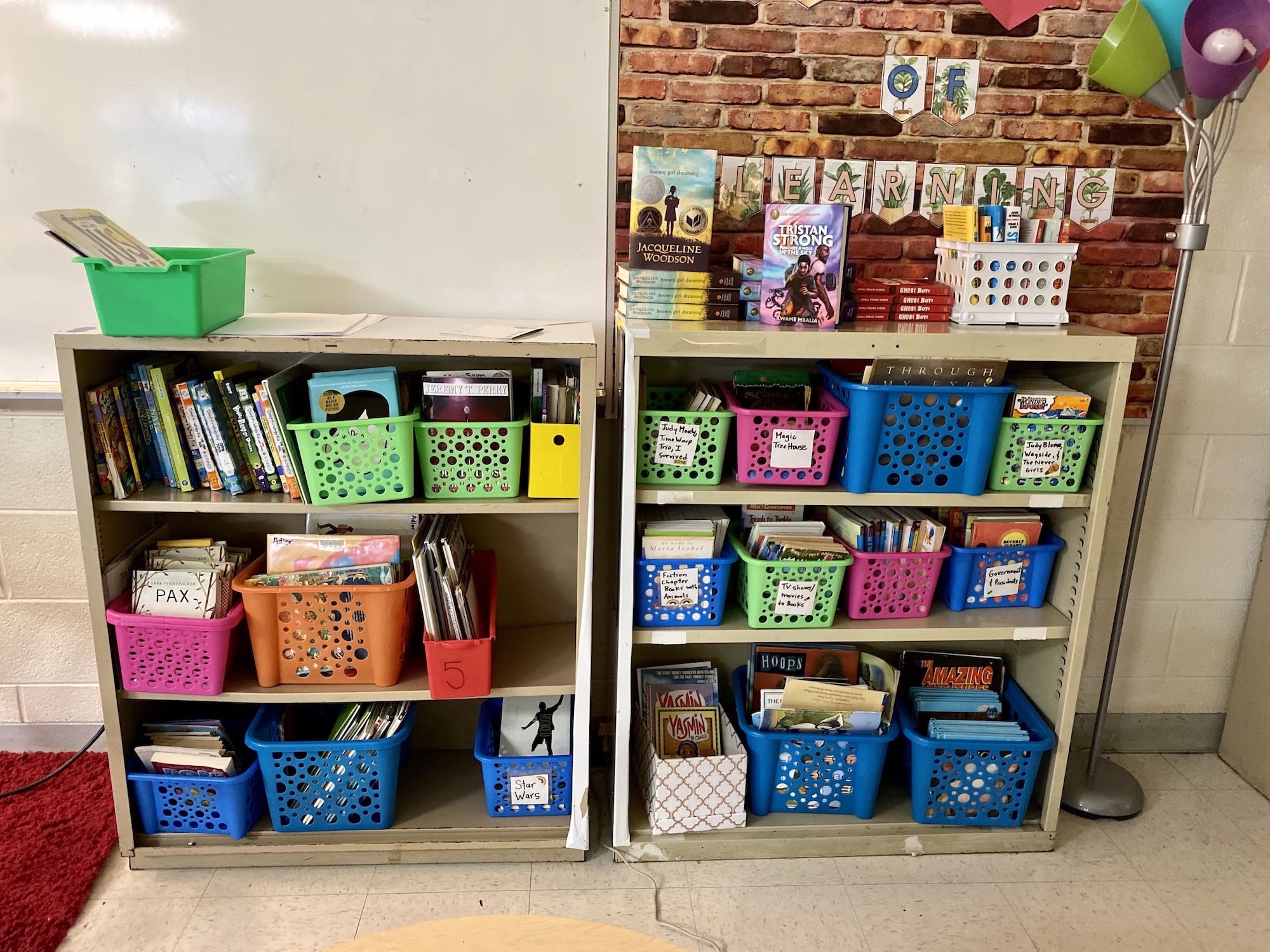 Damon Mitchell WPLN NewsA row of books are shelved in a small section of Lily Porter’s classroom.