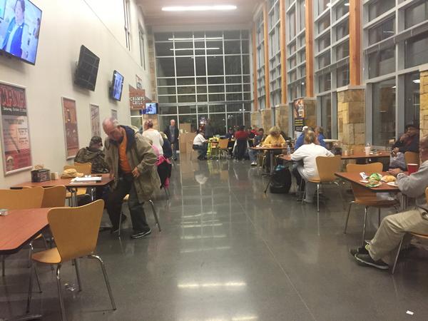 Surles says he evacuated late during the forest fires in the Smoky Mountains and grabbed a ride to a shelter in a cop car. “And on the way here, I’m telling you, on both sides of the road, it was a wall of flames. The wind was blowing 70, 80 miles an hour. The fire was blowing across the road.”