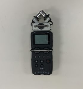 This is the star of the show. We use this device to record sound and control levels — that’s how loud the audio is. The two antennae-looking protrusions on top are the onboard mics, which are great for picking up background noise. Different external microphones can also be plugged into the Zoom recorder depending on the situation.