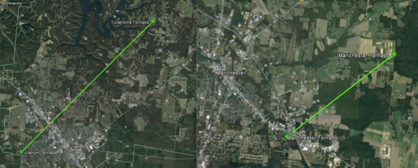 The damage path from each was at least 200 yards wide, said meteorologist Faith Borden. The Tullahoma twister traversed the city from one end to the other.