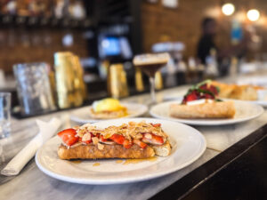 Chicken and Waffles, shrimp and grits, powdered sugar on top of fresh french toast — not to mention bottomless mimosas.