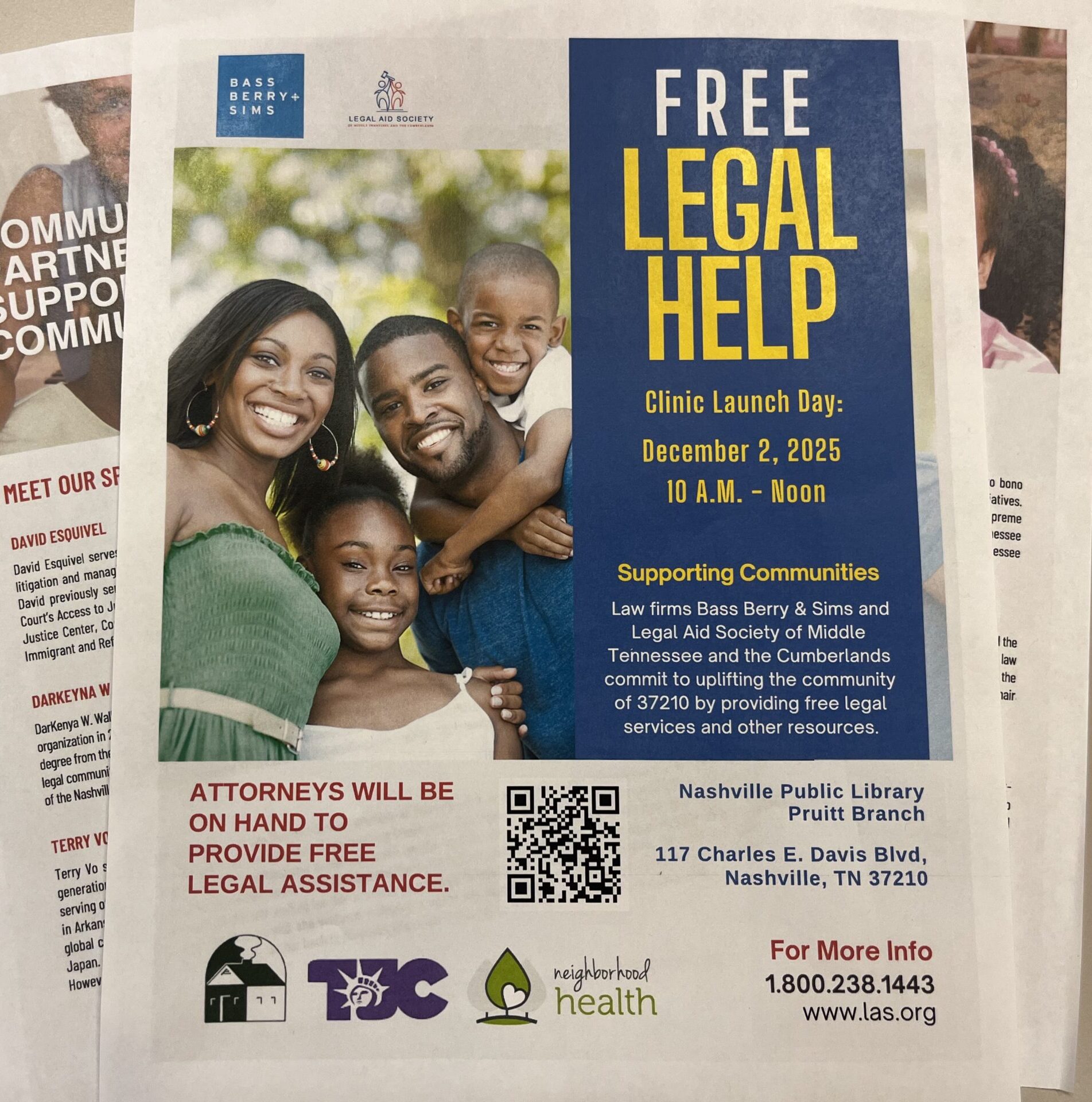 Now a new clinic is looking to bridge that gap. The Legal Aid Society of Middle Tennessee is partnering with Bass, Berry and Sims law firm to establish a free monthly legal clinic at the Nashville Public Library’s Pruitt Branch.