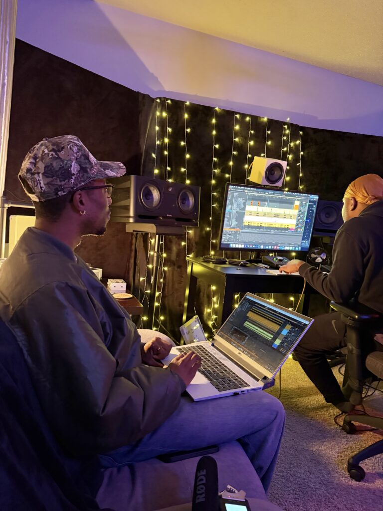 Shelldhn and producer KJ in the studio; photo credit: Jewly Hight