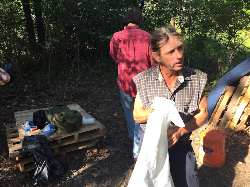 He points out that there are potential safety and sanitation risks at the camp, since it has no electricity or running water. The encampment also lies in an area where the parks department plans to build a walking trail.
