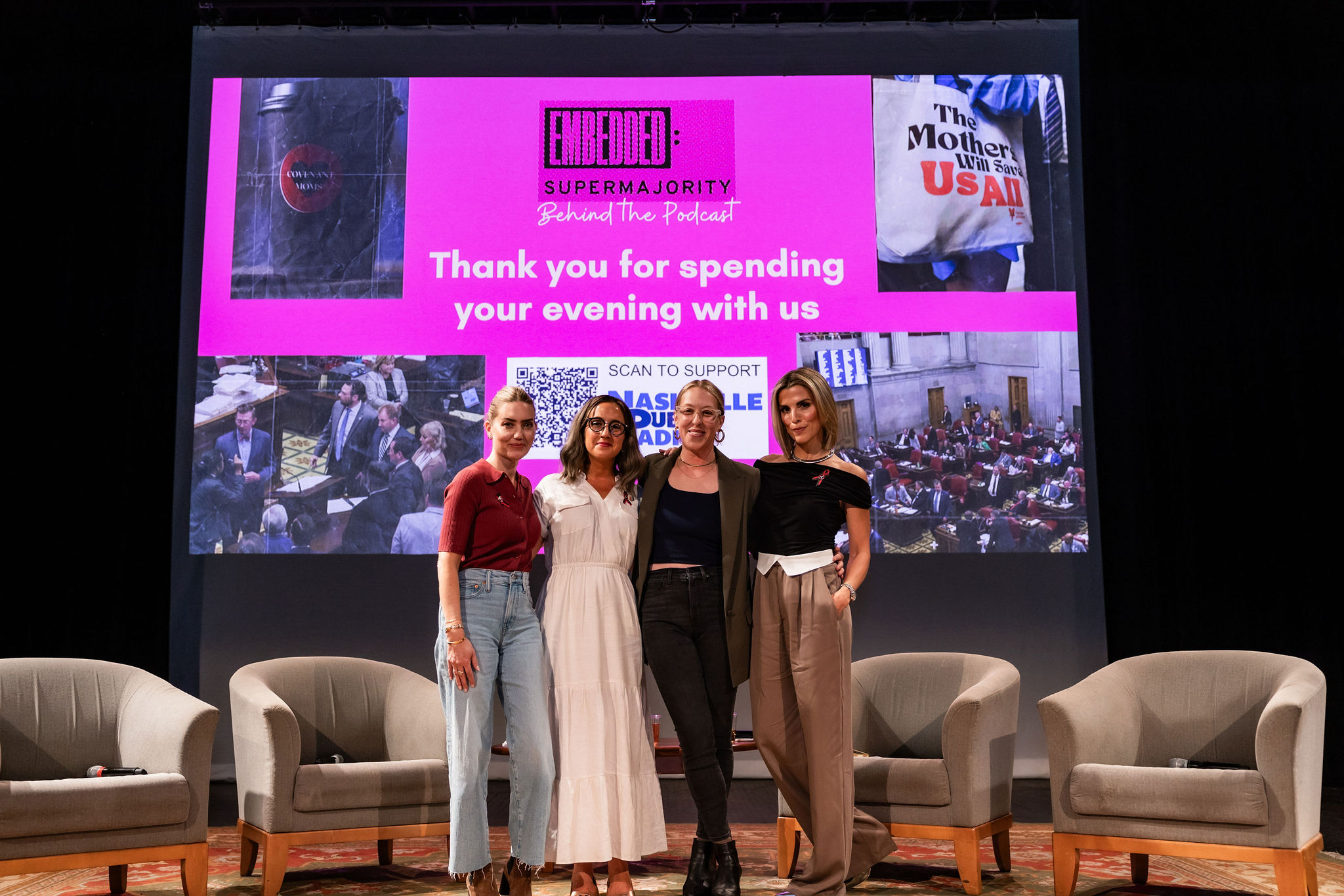 We returned to the Belcourt Theatre to dive deeper into “Supermajority,” the four-part series from NPR’s Embedded. Reporter and host Meribah Knight led a conversation with mothers impacted by the 2023 shooting at The Covenant School: Melissa Alexander, Mary Joyce, and Sarah Shoop-Neumann.