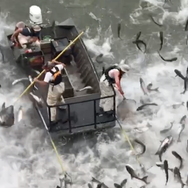 “Now, that’s a good size silver [carp],” Gevedon told the crowd. “Oh my, guys we’ve been getting ready for this. Don’t worry, I’ve got 1,000 pounds of fish. There is fish for everybody to cut today.”
