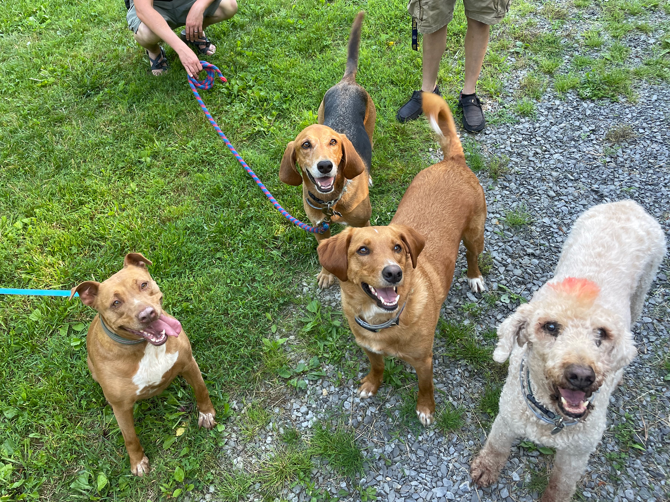 In the end, there were no hard feelings and the owners have since had a play date with all four dogs — cementing the fact that they are strangers no more.