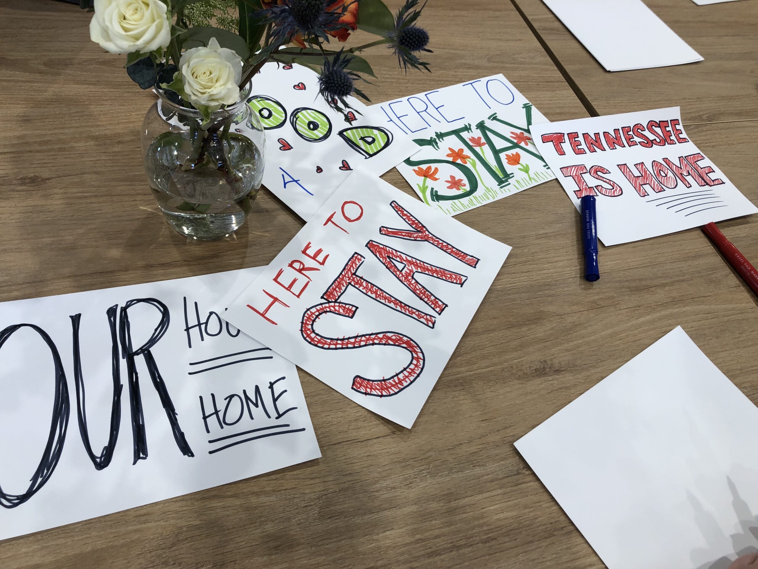 Char Daston WPLNAt a February 2025 volunteer event, attendees made pro-immigration signs to display at an upcoming protest at the Tennessee statehouse.