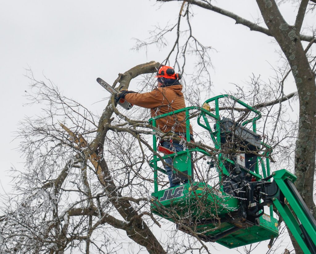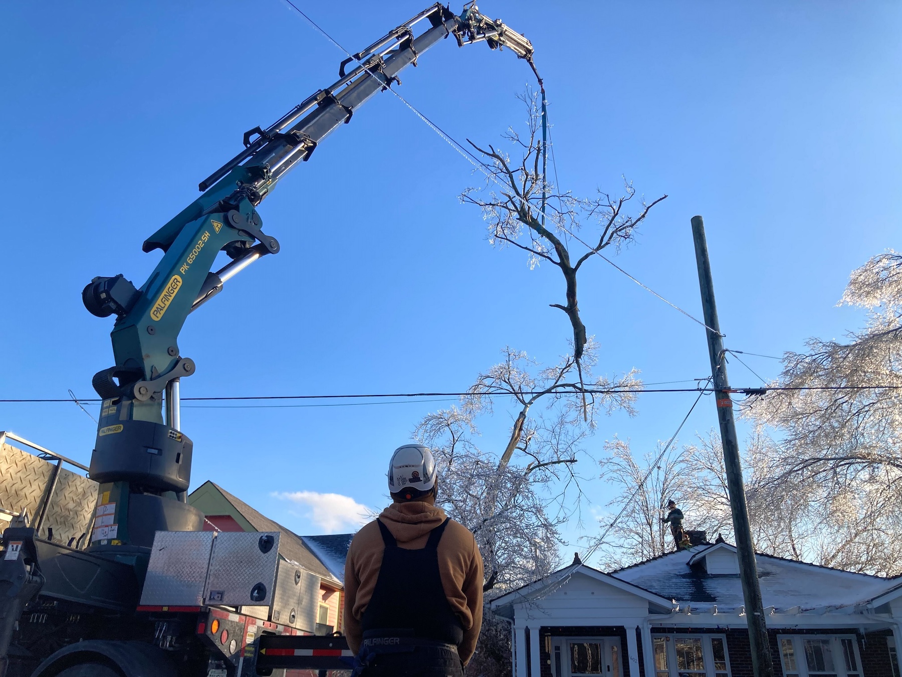 Tony Gonzalez WPLN NewsTree Worx, out of Chattanooga, helps with a precarious limb removal in East Nashville on Wednesday, Jan. 28, 2026.