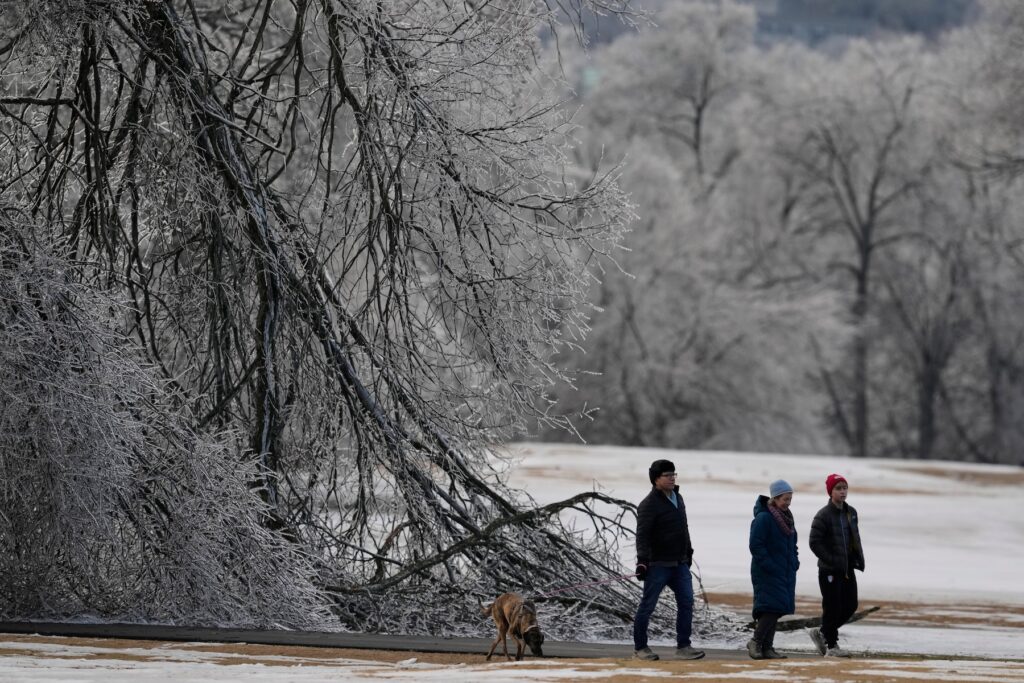 George Walker IV WPLN NewsPeople walk past ice covered trees, Wednesday, Jan. 28, 2026, in Nashville, Tenn.